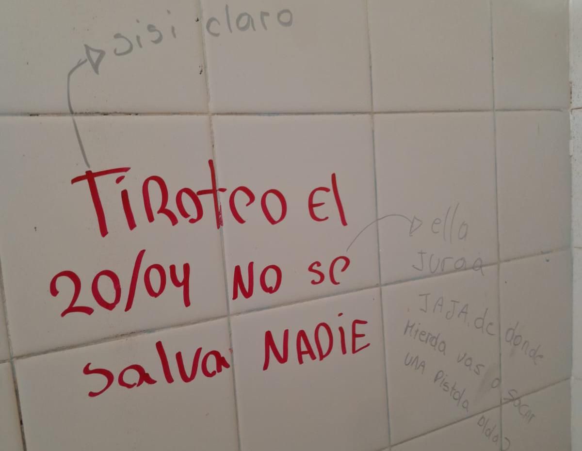 «Tiroteo el 20/04 no se salva nadie», fue el mensaje contundente en uno de los baños.